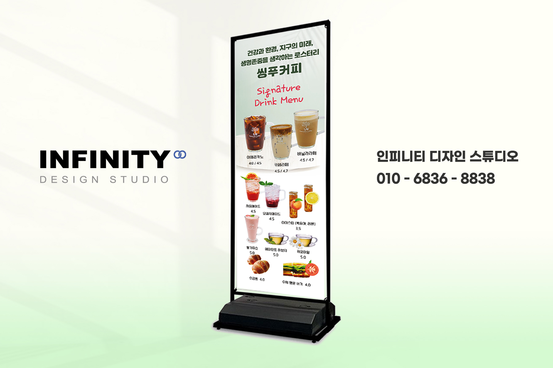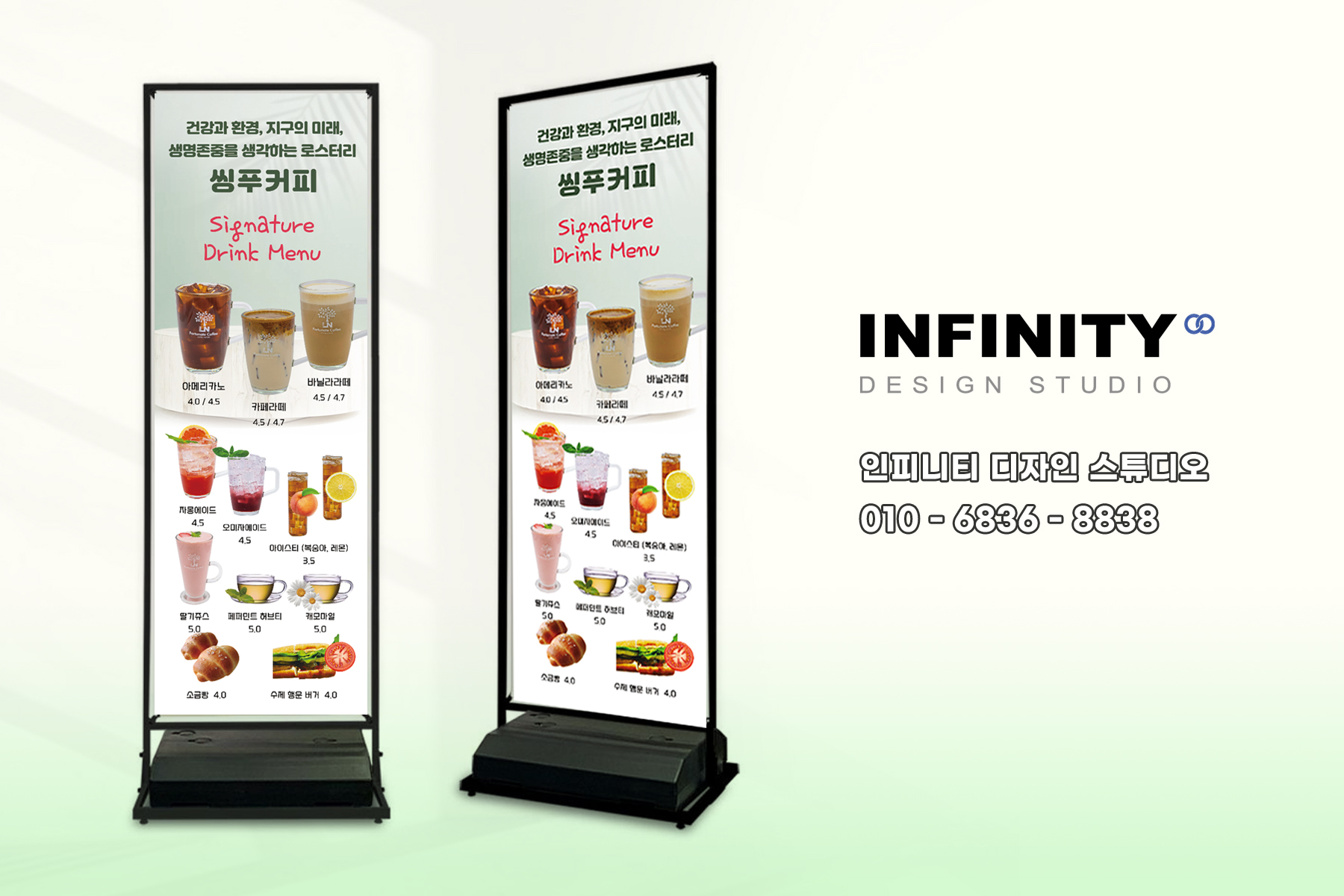 | 카페 배너, 안내문 포스터 디자인 제작 전문, 실외 물통배너 거치대 세트 납품 / 사내 카페 홍보물 (0) | 2023.03.19 |